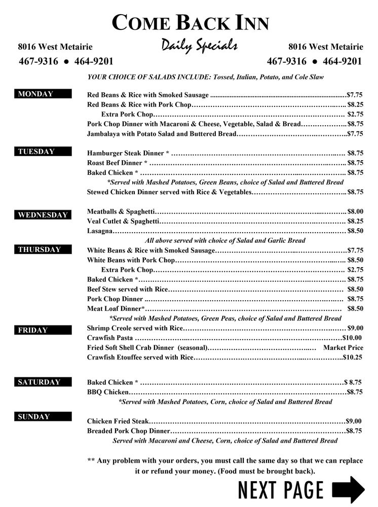 Come Back Inn, located in Metairie, Louisiana, is a charming American restaurant offering a variety of delicious dishes and amenities. The menu boasts a selection of hearty salads, flavorful PoBoy sandwiches, and mouthwatering soft bun sandwiches. Standout dishes include the Chef Salad with turkey, ham, and cheddar cheese, the Fried Shrimp PoBoy on soft bun, and the Italian Sausage PoBoy on soft bun. Customers have praised the restaurant for its tasty gumbo, friendly service, and cozy atmosphere. While some customers have noted minor drawbacks such as noise levels and personal taste preferences, overall, Come Back Inn is a solid choice for a satisfying meal in a welcoming setting. With options for takeout, reservations, catering, and outdoor seating, this restaurant has something for everyone to enjoy.